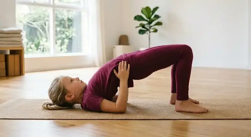 Yoga for kids is effective only when breath-led stabilisation precedes movement in a fixed sequence. This structure applies directly to short, repeatable home sessions where consistency—not variety—determines motor learning. The same sequencing principle extends to later stages of practice such as yoga for seniors, where stability must also precede load.